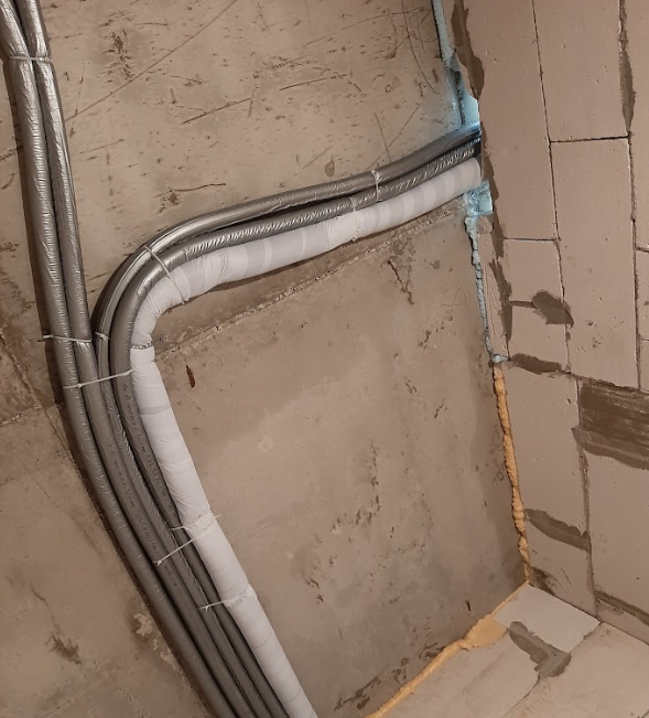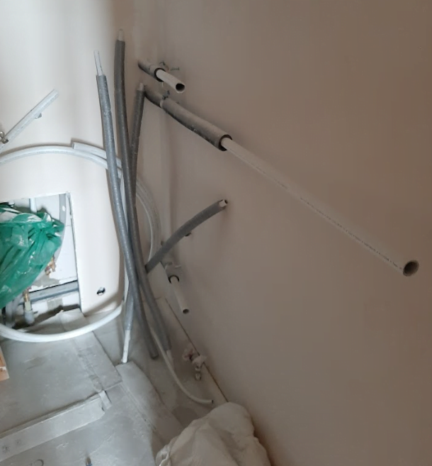 Прокладання трубопроводів та електропроводки для інтеграції настінних фанкойлів Daikin у систему опалення та охолодження.