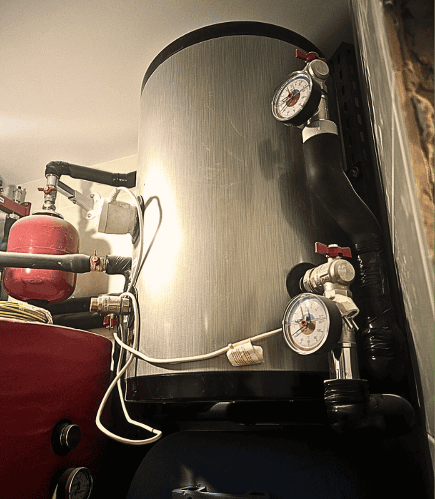Підключення буферної ємності виконано з урахуванням гідравлічної ув’язки з тепловим насосом та основною розводкою трубопроводів. Всі стики були герметично ізольовані, а труби додатково утеплені для мінімізації тепловтрат.
