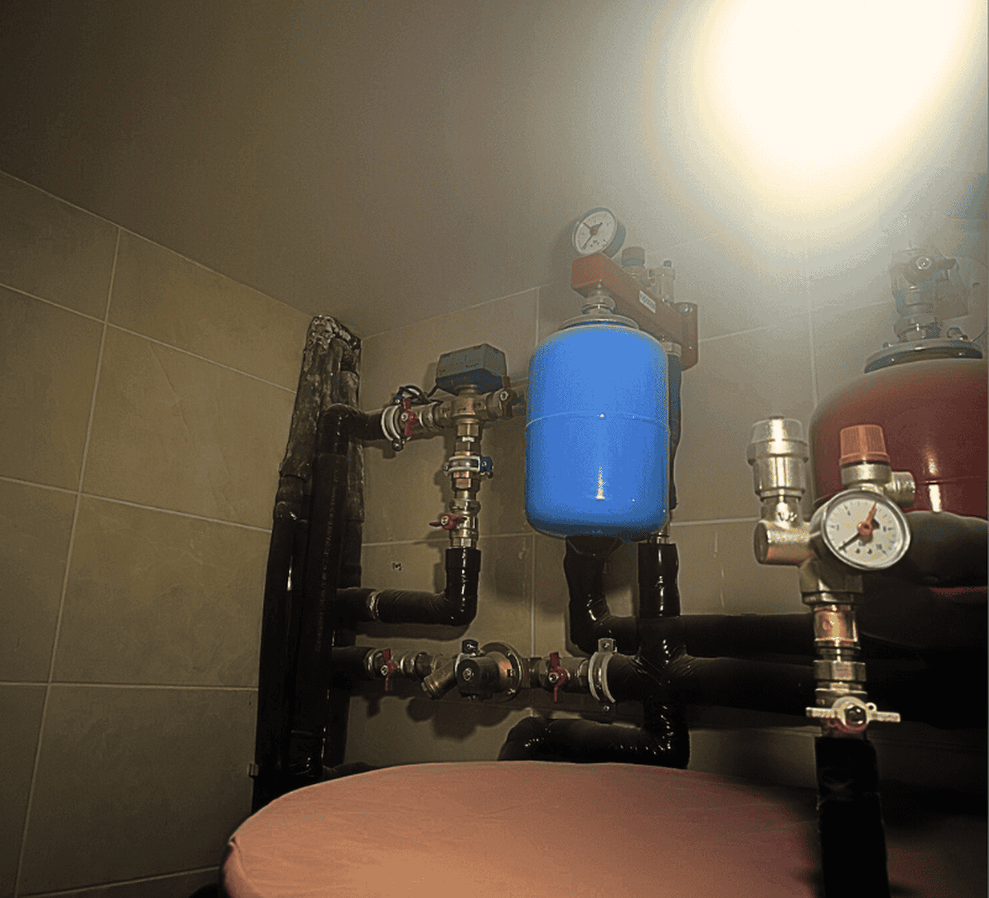 Для компенсації теплового розширення теплоносія при нагріванні у систему було додано розширювальний бак. Він запобігає надлишковому підвищенню тиску в трубопроводах і забезпечує їх захист від можливих гідроударів. Це дозволяє підтримувати стабільність тиску в системі опалення та знижує ризик аварійних ситуацій.